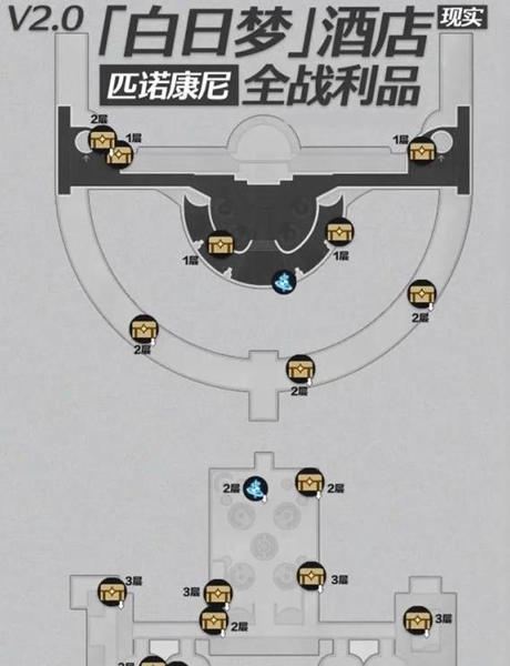1、崩坏星穹铁道匹诺康尼白日梦酒店现实宝箱位置如下: