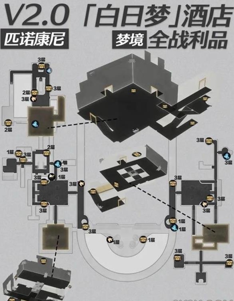 3、崩坏星穹铁道匹诺康尼白日梦酒店梦境宝箱位置如下: