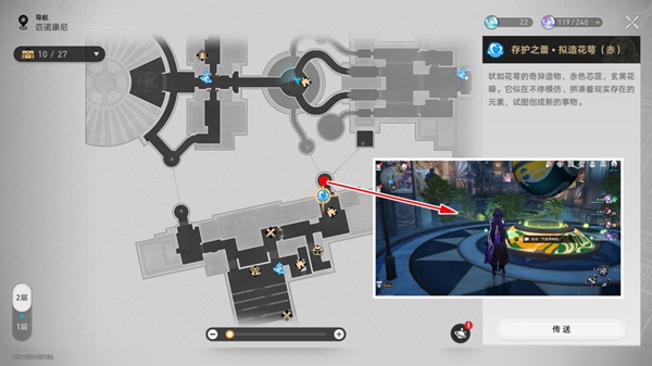 1、第一步玩家需要打开地图拉掉克劳克影视乐园的“存护之蕾·拟造花萼(赤)”锚点位置处。