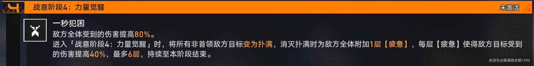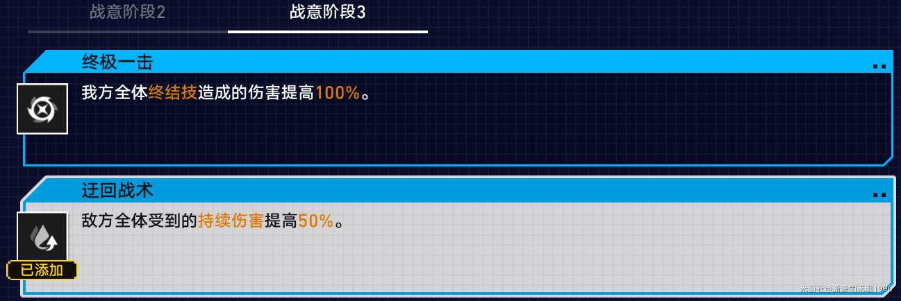 战意阶段3:分别侧重终结技与持续伤害,需根据队伍的主要伤害类型进行取舍。