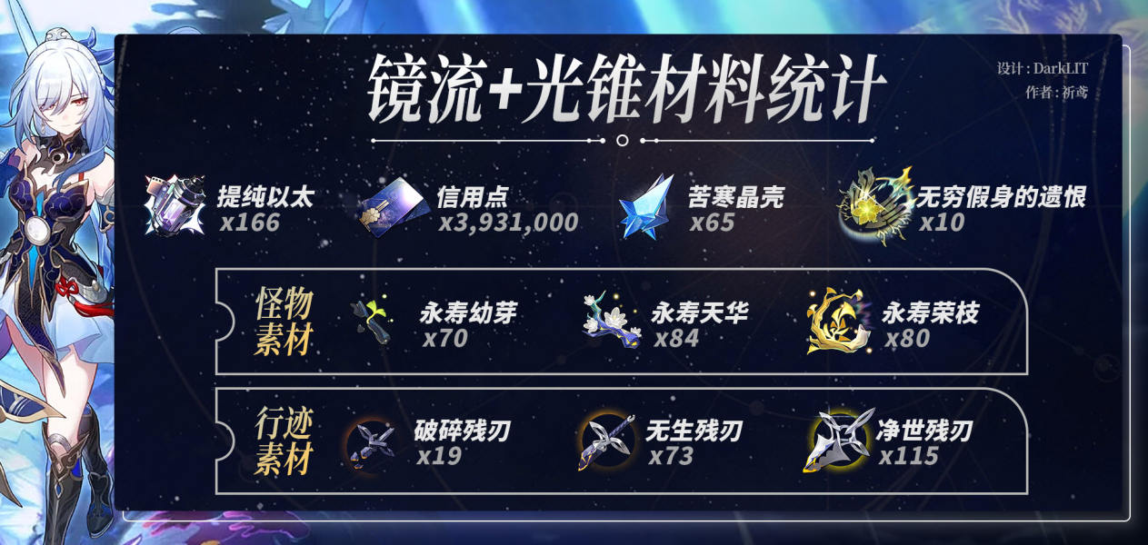 《崩坏星穹铁道》镜流养成材料统计