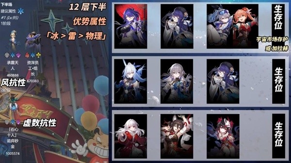【下半】优势属性「冰>雷>物理」,敌人抗性「虚数、风」。