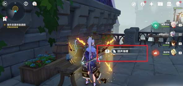 2、然后就可以通过任务指引继续前进,之后就可以来到一处平台的位置。这里会获取回声海螺。