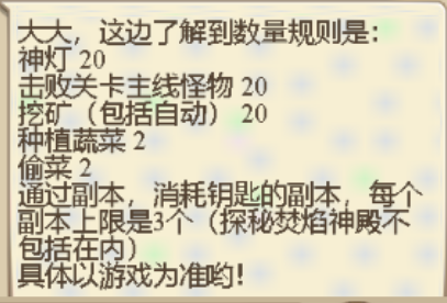 通过副本,消耗钥匙的副本,每个副本上限是3个(探秘焚焰神殿不包括在内)具体以游戏为'哟!