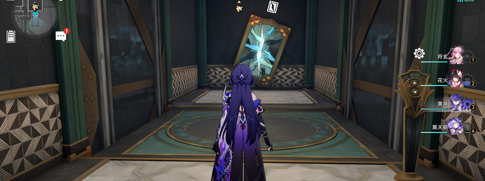 (14)把电梯停在1楼,之后上到2楼,此时电梯背后的画作就会出现,调查画作就能进入东边的房间了