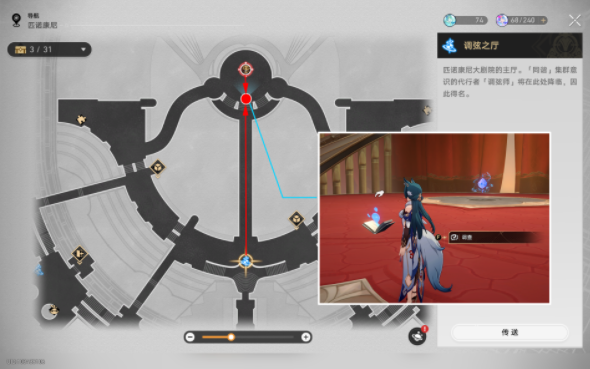 2、等收到短信后,传送至“匹诺康尼大剧院”,“调弦之厅”锚点(若已开启周本,则传送至新周本更快);