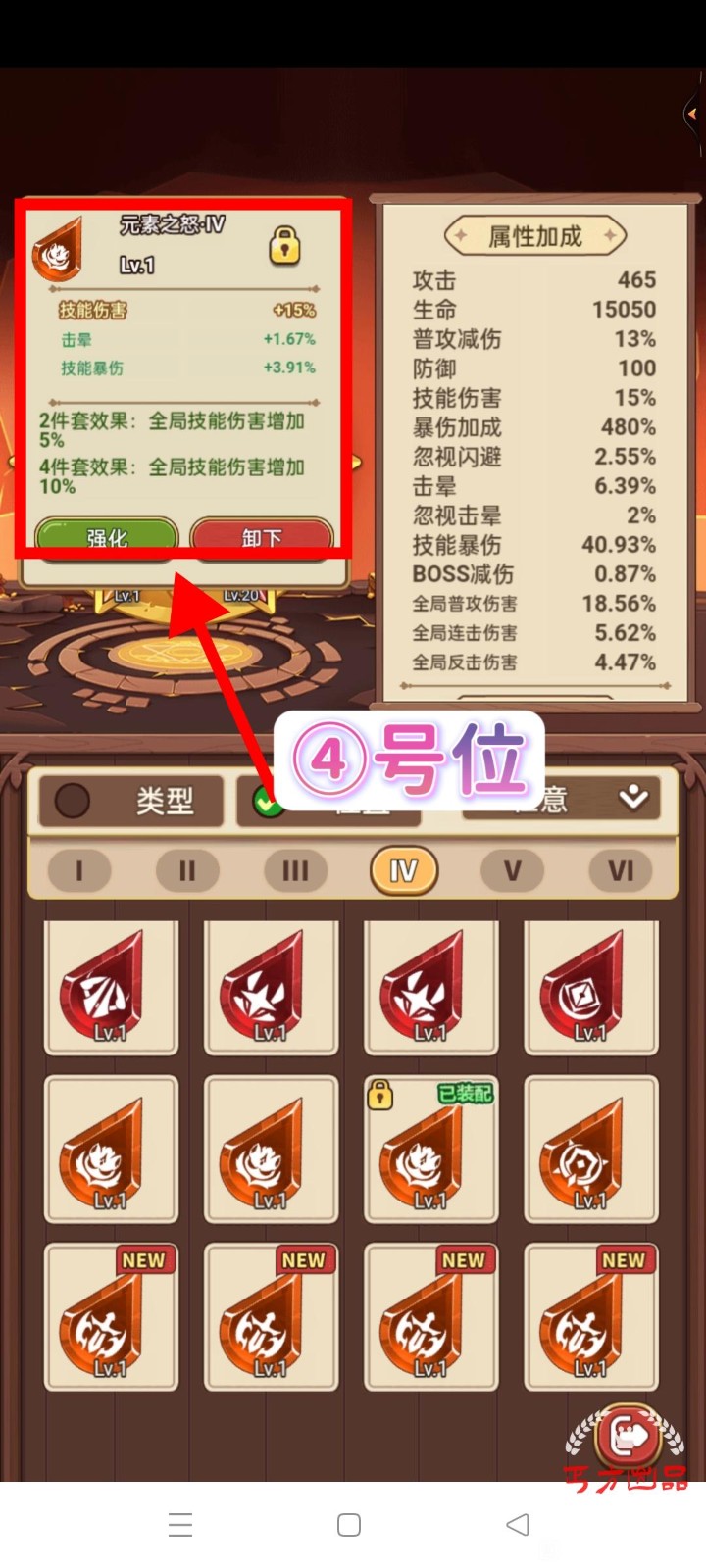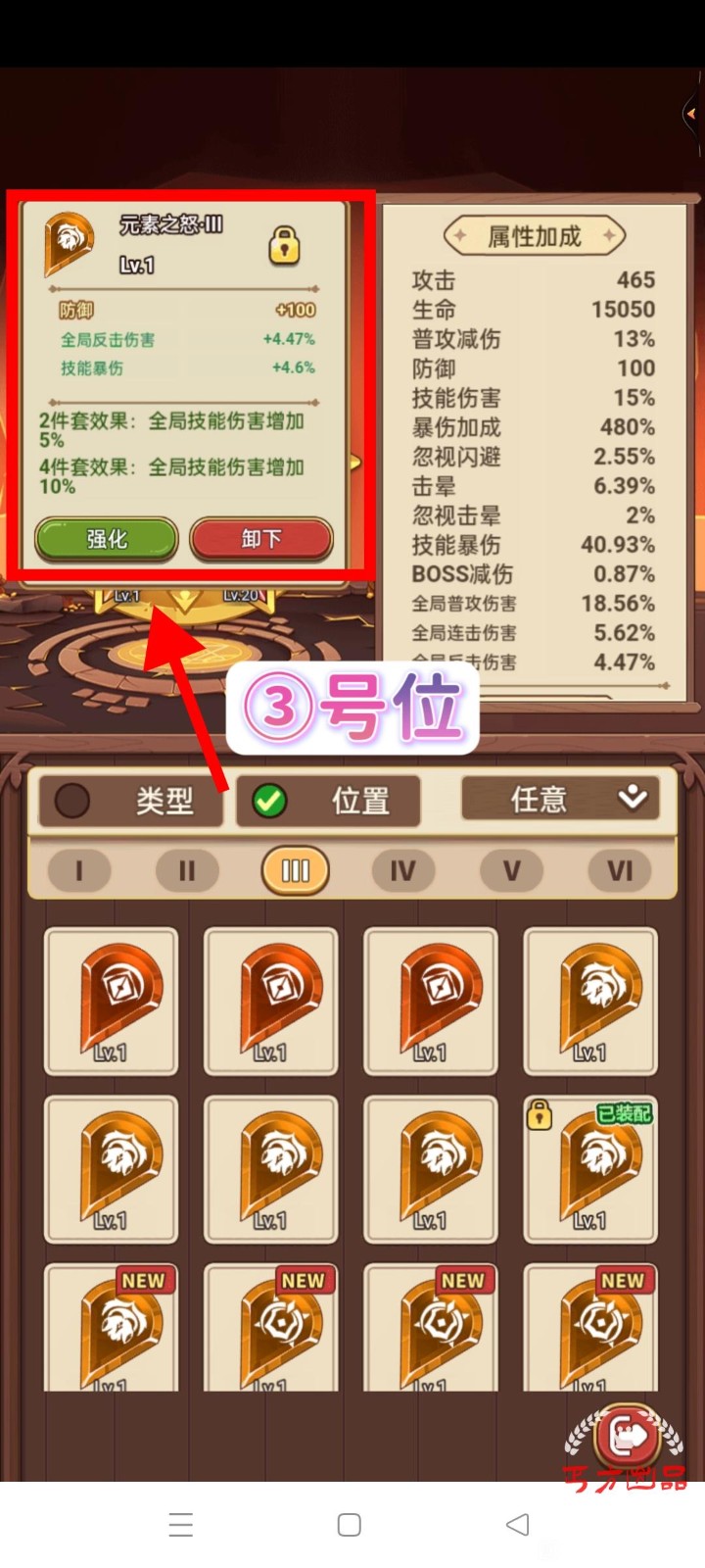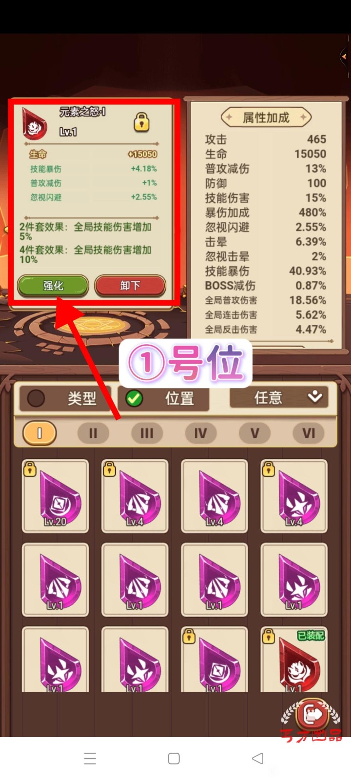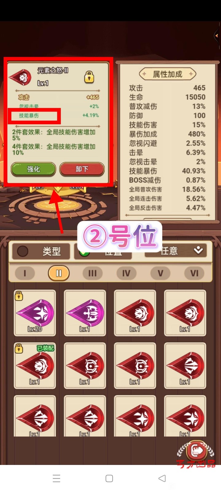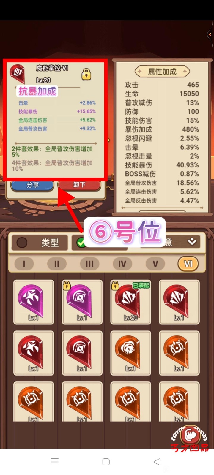 ③、符石升级优先级推荐:2、4、6号位;次级推荐:1、3、5号位;