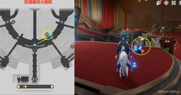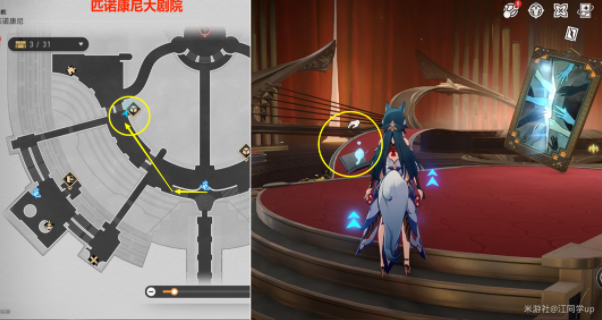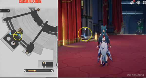 来到【匹诺康尼大剧院】下图位置,直接拾取贴纸【舞者·三】。