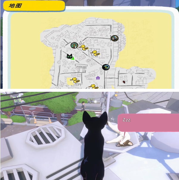 1、午睡动作是在下图位置,先来到下图这个点位,在这里和正在睡觉的小白猫睡觉;