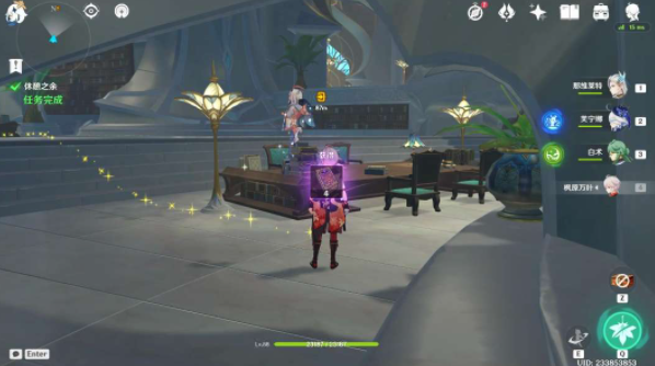 4、等和艾尔海森对话结束,即可完成任务「休憩之余」。