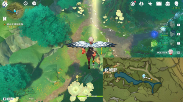 1、调制游戏时间至第二天14-24点之间,传送化城郭神像,前往东侧神像下;