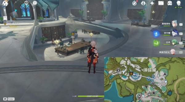 3、之后回到教令院,先传送须弥城东南方向锚点,前往智慧宫,与艾尔海森对话;