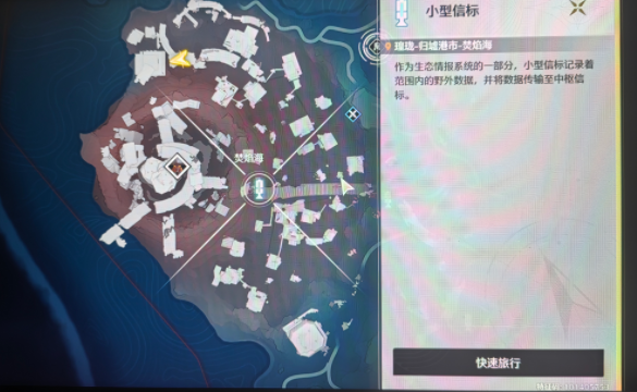 1、先来到地图上焚焰海这个信标,残星门徒就在我(黄色箭头)所在的位置;