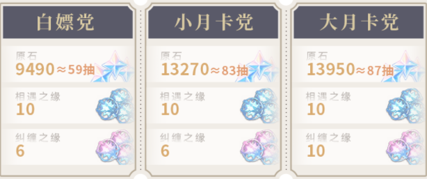 注:购买月卡的300结晶不计入,有需要可自行转化