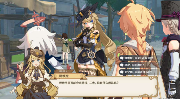 2、然后要前往「千织屋」与其他人会合,直接往地图的东南方向走,与林尼对话;