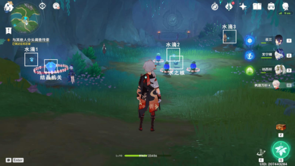 ①拾取水滴1-3,将水之核安置在底座上