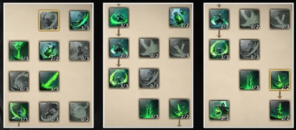 这里2技能选的是“迅击”,CD快可以充能2层,个人感觉手感更好点。“鬼刃斩”CD长,但提供更多弱点,可以考虑配合最后一行的天赋“弱点特效”一起使用。