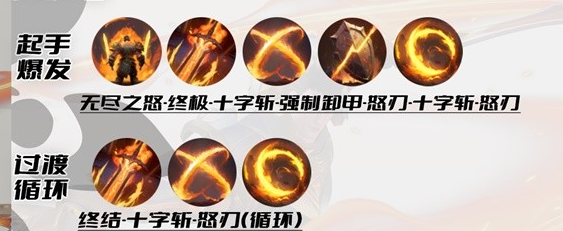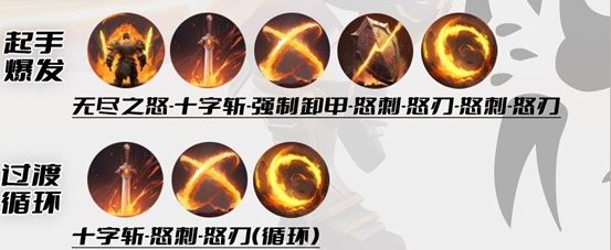 起手爆发:无尽之怒·十字斩·强制卸甲·怒刺·怒刃·怒刺·怒刃
