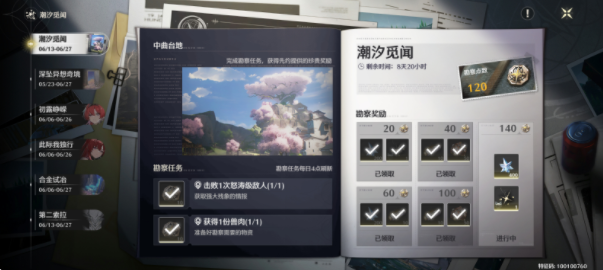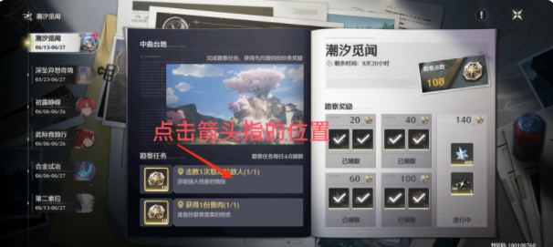 3、完成后点击两个任务的长条框可以领取奖励,勘察点数领取完,任务结束。