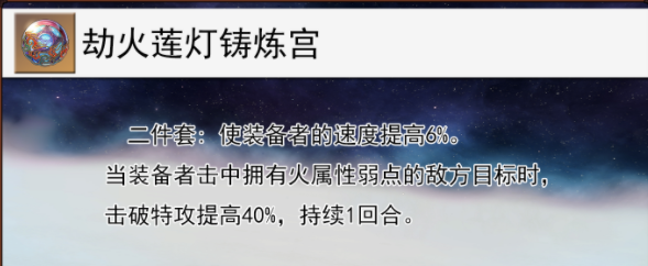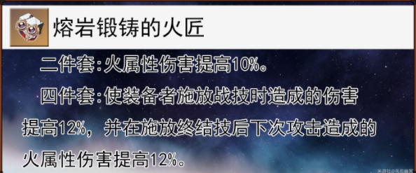 刚好这套需要敌人有火弱点,自己的强化战技又能给敌人挂火弱点,完全的适配,也是毕业饰品之一。