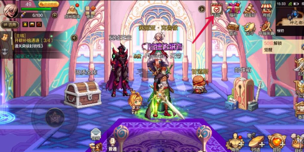 1、玩家首先进入地下城与勇士手游,在游戏大厅界面点击右上角的活动图标,如下图所示。