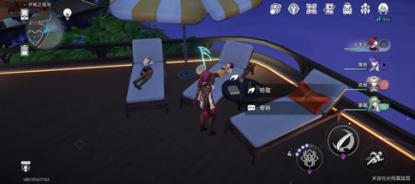 2、来到这里之后,在躺椅旁边的小圆桌上就可以看到了,点击拾取即可;