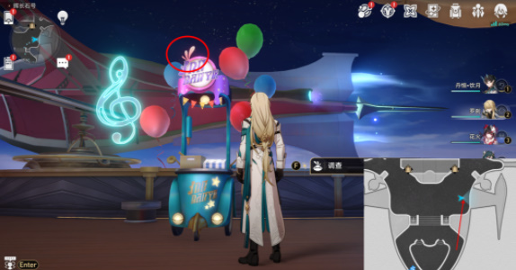在宴会舱外面的气球上有一只折纸小鸟。(这里要使用远程攻击去击破气球,例如驭空、布洛尼亚等)