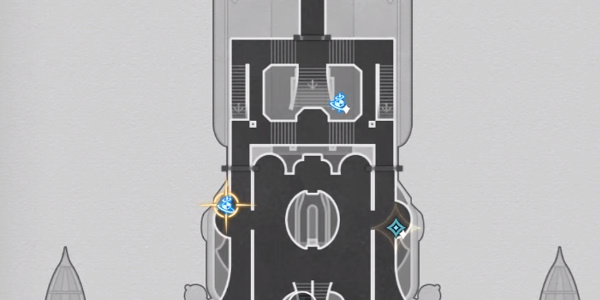7、第四个齿轮路线如下图所示,玩家将模块1旋转三次,然后将模块2向左移动,最后调整幻梦之镜就可以拿到第四个齿轮。