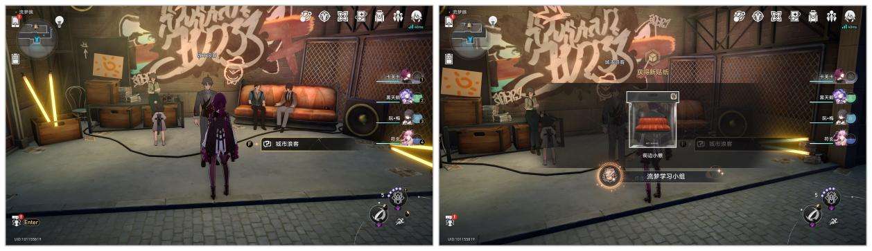传送到任意其他地图,最后依次返回这个地方,即可获得贴纸:街边小憩和隐藏成就:流梦学习小组