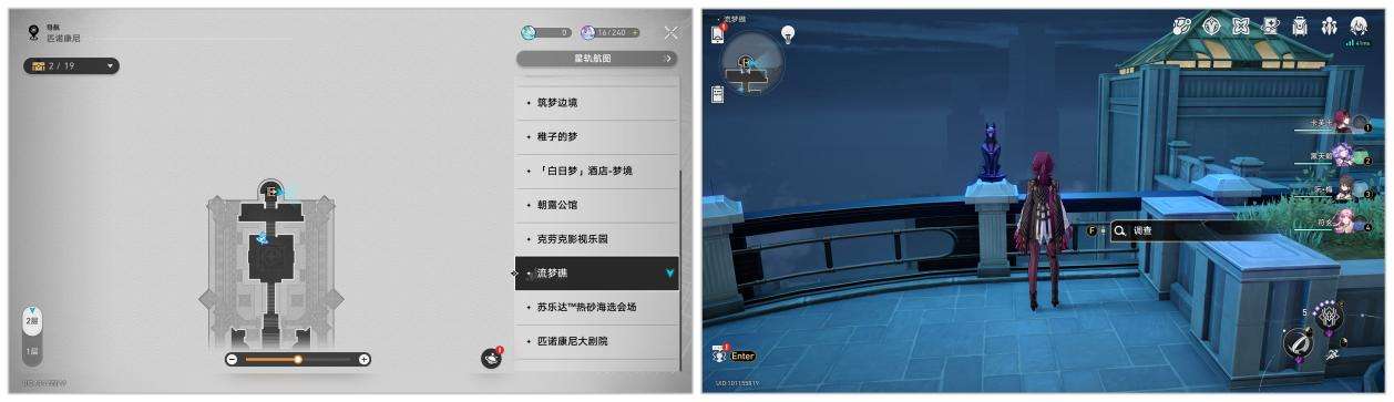 来到流梦礁1层的下述位置,调查栏杆的发光点即可获得,可以从1层传送点跑过来或者从2层传送点坐电梯下来