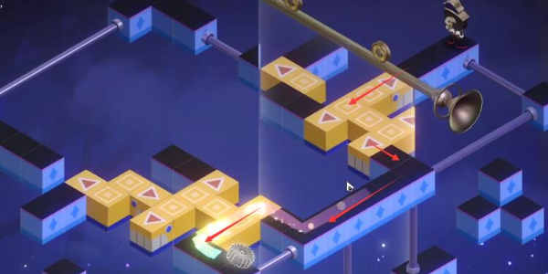 3、第二个齿轮需要玩家移动两处黄色的积木,并将幻梦之镜移动到中间位置,最后路线如下图所示。