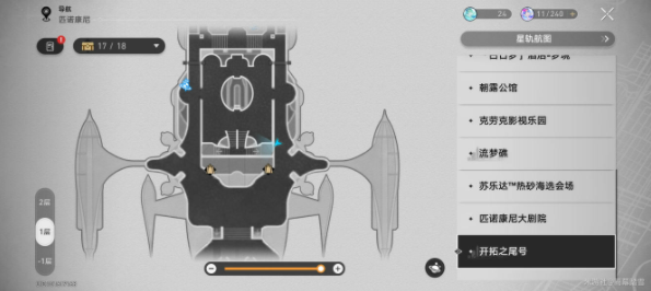 1、匹诺康尼-开拓之尾号『原晖长石号』〈1层甲板右侧食堂过道〉【具体位置如图所示】;