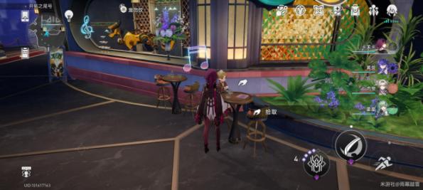 2、在饮品店店员【宠勿饮】右侧的小桌上,椅子上还有个皮皮西人,玩家靠近之后点击拾取即可;
