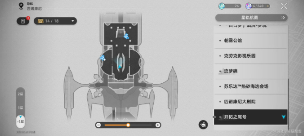 1、在匹诺康尼-开拓之尾号『原晖长石号』〈-1层贵宾区〉【具体位置如图所示】;