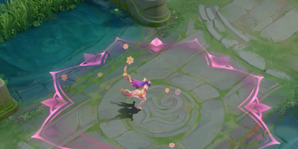 激活后,貂蝉周围会形成一片闪耀着彩虹光芒的水池,敌人在这片水域中将难以逃脱貂蝉的追击。