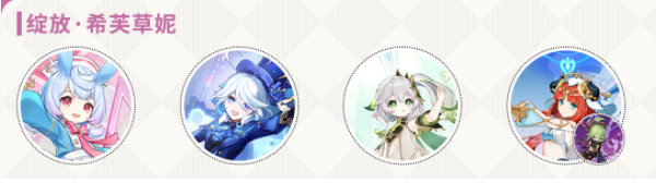 2、绽放队:希格雯+芙宁娜+草神+妮露