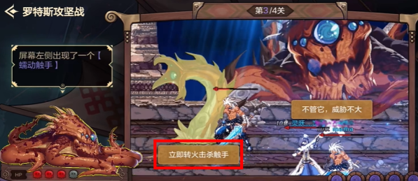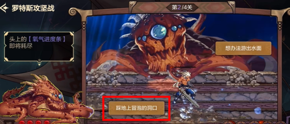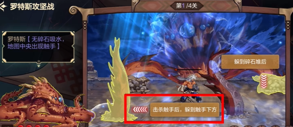 问题3:罗特斯吸水,同时出现触手是黑色气泡攻击的提示,需要快速击杀触手后在其残骸下方躲避黑色气泡。