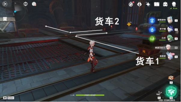 按图中指引路线先推货车2至角落,再推货车1至货车2位置;