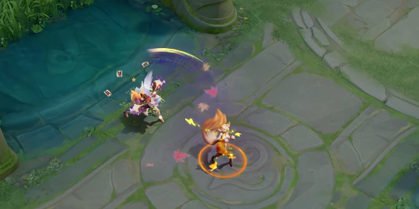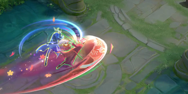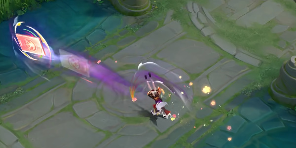 花札牌掷出后,高速旋转带起气旋;命中后花牌落下,火焰燃尽;牌中的猪鹿侍者随即交错而出,依次攻击前后目标。