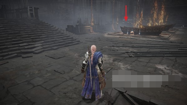 1、在幽影城内,击败黄金河马并激活赐福【正门广场】后,往西北方向前进,来到城堡顶层可以看到一座很宽的桥,桥旁边有着火的船。