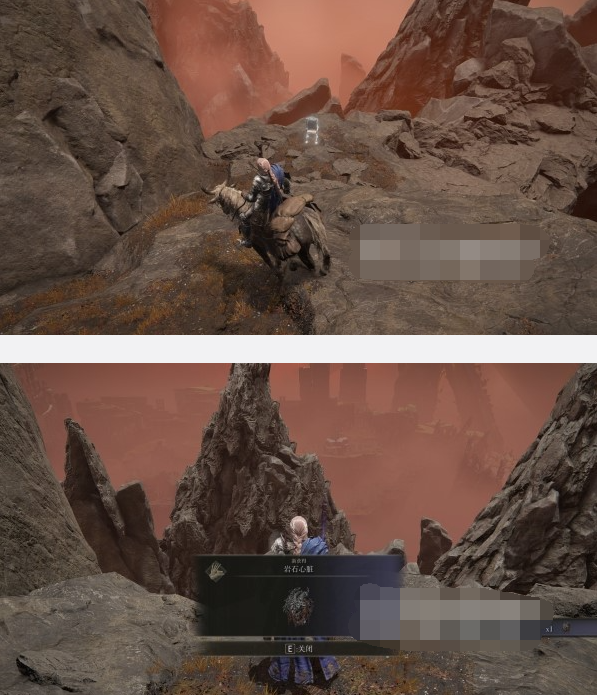 6、从赐福【尖刺山(中段)】所在位置,小心沿着山路往西南方向走,可以看到另一个气流,使用气流到达顶部,再往下跳到西南房,继续沿着陆前进,可以看到一块向西凸出的大石头。从石头后方往下走,利用岩石慢慢跳到下层,