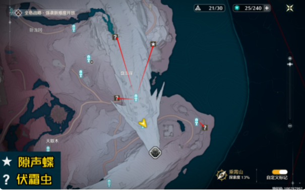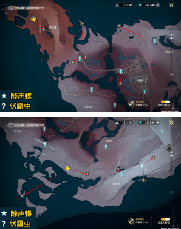*其中星星图标是隙声蝶,问号图标是伏霜虫,具体位置如下:
