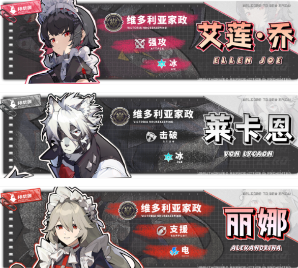如果抽到丽娜,也可选择丽娜,与狼叔、艾莲组成维多利亚家政队。丽娜能为艾莲提供穿透增益,无非丽娜【核心技】额外能力提供的全体电伤提高对队伍作用不大,但无伤大雅。
