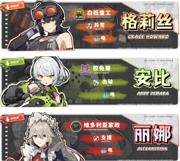 安比前期可站场将敌人打入失衡状态,因为异常伤害可以吃到防御乘区,而丽娜提供的穿透增益属于防御区,因此丽娜能提高格莉丝的【感电】伤害。