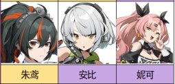 朱鸢主C,安比击破,妮可辅助。朱鸢攻击范围窄,所以妮可的聚怪能力非常重要。
