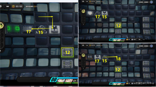 11、接着将3炸弹推到17区域后,继续往17区域走,就会自动将3炸弹再换回到15区域,然后再将3炸弹推到18区域;