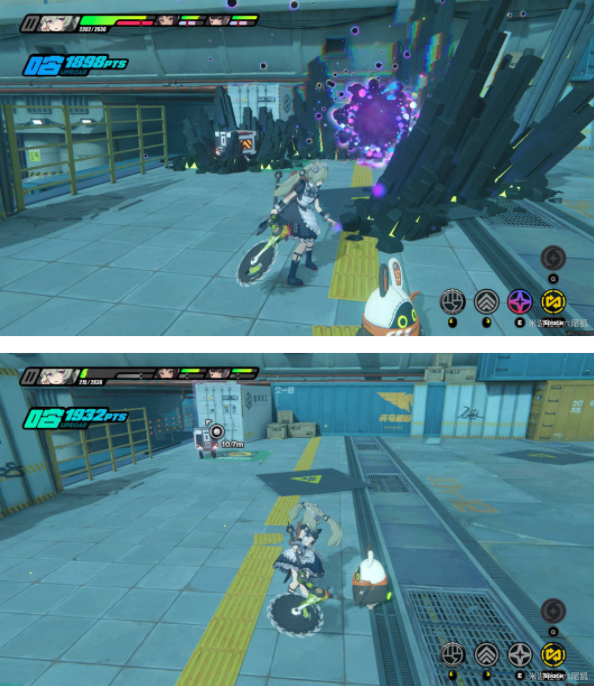 BUFF1:在第一个大怪指示点前不要随指引先过去,车厢上连续左拐有一个回满终结技的道具。