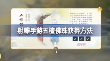 在射雕手游中,五檀佛珠是一种极其珍贵的道具,拥有它可以使你在游戏中更加游刃有余。那么,五檀佛珠究竟怎么获得呢?下面,就让我们一起探讨一下。详细的攻略内容已经分享在下面了,还没获得的