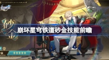 崩坏星穹铁道砂金技能前瞻。砂金是崩坏星穹铁道2.1版本下进入卡池的五星限定角色。因其在2.1版本主线中亮眼的表现收获了很多玩家的喜爱。也应其追击队存护的定位让很多追击队玩家决定抽取