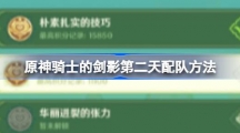 原神骑士的剑影第二天怎么配队?原神是米哈游旗下的一款二次元开放世界冒险游戏。游戏中有着许多活动供玩家游玩,完成活动能够获得丰富的奖励。许多玩家想知道骑士的剑影第二天怎么配队。以下为
